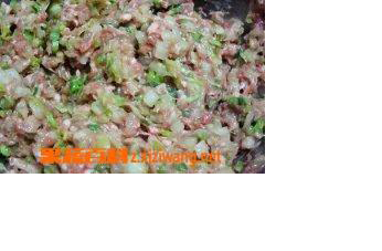 4、大家调馅时最好用筷子向顺时针方向搅动,这样调的馅,能让白菜与肉更好的结合在一起。