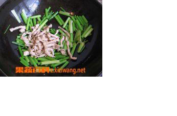 2. 热锅,倒油,油热后,关小火,倒入肉片,翻炒。