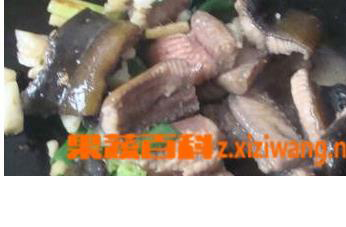 3、将锅中放油,油热后,放入葱段、姜末、蒜末,稍微翻炒之后,放入黄鳝翻炒。