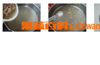 3、在锅中倒入骨头汤,然后烧开以后,把火腿丝和鸡肉丝一起放入汤中,再加入少许盐来调味。