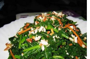 凉拌蔬菜可以最好地保持甘蓝的营养价值,在凉拌羽衣甘蓝之前,可以在开水中焯一下,然后把蘑菇也焯一下,最后加入香油、芝麻酱、熟芝麻、糖、醋、盐来调味。这道菜清脆可口,羽衣甘蓝和蘑菇都是抗癌明星,因此是美味又营养的佳肴。