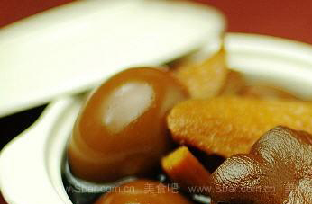 3 把醋和姜放在一起在煲滚以后,加入熟鸡蛋,慢火煲20分钟,关火,放2天。然后在煲,煲滚就拿起来。第三天放处理好的猪脚,煲滚5分钟,关火。
