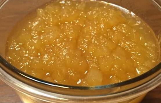 3、把搅碎以后的苹果泥儿取出以后,重新放入到砂锅中,把准备好的新鲜柠檬洗净后切开挤出里面的柠檬汁,直接放在锅中和苹果泥调匀,随后加热煮开,然后用中小火慢慢煮,煮到苹果的果肉变成透明状,而且水分收干成为浓稠的浆状以后才能关火。