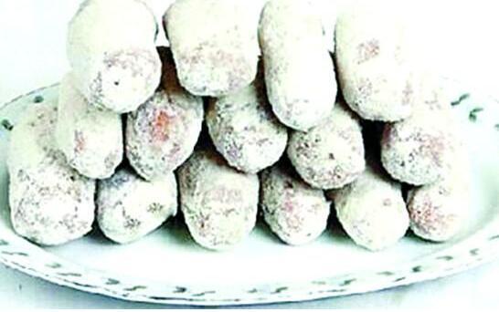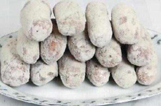 雪枣并不是真的枣,它是以糯米制成的一种美味小吃,在制作雪枣的时候需要准备适量的糯米和黄豆粉,还要准备少量的熟石灰,他们放在一起调匀,然后入油锅炸,炸到中间镂空以后,取出裹上一层薄薄的白色外壳就是做好的雪枣。