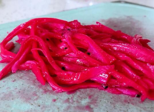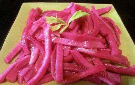 1、火龙果皮做成凉拌菜特别好吃,在做的时候需要把准备好的新鲜火龙果皮洗净并切成细丝,然后准备适量白醋和白糖,把它们放在一起条鱼,让火龙果皮腌制半小时以后取出放在盘子中,连上适量麻油就能吃,这时的火龙果皮酸甜爽口滋味诱人。