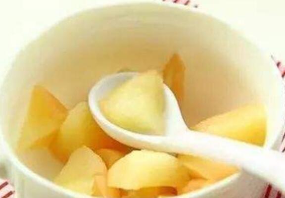 2、蒸苹果水的时候还可以给他搭配其他的水果,具体做法是准备一个苹果和一个雪梨,把苹果和雪梨全部洗净以后消掉果皮,取消果肉,切成块状放在大点的盖碗中,然后放入适量冰糖调匀后入锅隔水蒸,开锅后继续蒸20分钟,蒸好后取出降温,就能得到蒸好苹果水。