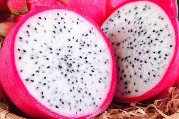 1、红火龙果和白火龙果从外观上看没有明显区别,它们的外表都是玫红色的存在,而且有绿色的鳞片状物质,但切开以后,它们的果肉颜色却有明显不同,红火龙果的果肉为玫红色,而白火龙果的果肉则为白色。