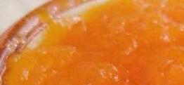 3、泥状的木瓜果肉取出以后,放在干净的大碗中,加入准备好的冰糖调匀以后腌制,等冰糖全部化开以后,把木瓜果肉再放入的准备好的不粘锅中加热煮开,再用小火慢慢熬,在熬的过程中要经常搅拌,直到把锅中的木瓜果肉熬成浓稠的橙红色酱状才能关火,取出降温以后就能装瓶,这时木瓜酱已经做好,可以随时取出食用。