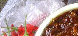 西瓜酱吃起来甜甜的、咸咸的、辣辣的,是最好的下饭菜。如果不喜欢自己动手炒菜,可以用西瓜酱来拌饭吃。在碗里装一大碗白米饭,加入两勺子的西瓜酱,用勺子将饭拌匀之后,就可以吃,这样的吃下两大碗不是问题。