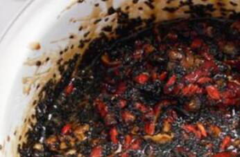 2、制作固元膏时要把准备好的材料进行分别处理,特别是黑芝麻和核桃仁可以放在炒锅中,慢慢把它们炒熟,也可以把它们放在烤箱的烤盘中,入烤箱烤5~10分钟,红枣要从中间切开去掉枣核,把得到的枣肉入锅炒焦,把这些食材处理好以后才能去制作固元膏。