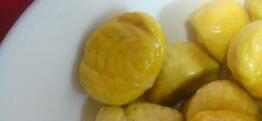 在去除大板栗的内皮时,还可以采用冰箱冷冻法,具体做法是把大板栗放到开水中煮制,煮开以后取出降温再把它放入冰箱的冷冻室中,冷冻2到3小时,这样就会让大板栗的内皮与外层硬壳黏连在一起,里面的果肉会自动剥离开,把它们取出以后用手把外壳去掉就能得到里面光滑的果肉。