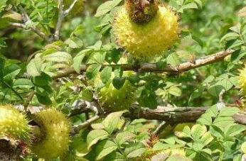 刺梨果成熟以后为黄色,它多为扁球形或者圆锥形,它的直径在二到四厘米之间,表面密布针刺,并有一些褐色的斑点存在。刺梨果成熟以后有淡淡的果香,味道酸而涩,略甜,可以直接吃,也可以做汤或者泡水喝。