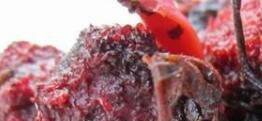 5、把晒好的杨梅与洗好的紫苏放在一起用手揉搓匀,让两者味道互相渗透到对方里面去,继续晒制一段时间,晒到杨梅八成干以后就能收起来,这时自制的紫苏杨梅也就做好,想吃时可以随时取出食用,而且把它存入冰箱冷藏能保存较长的时间。