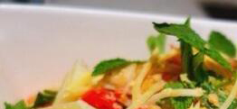 生吃木瓜时,还可以把它制成水果沙拉,制作时把新鲜木瓜的果皮和里边的瓜子全部去掉,然后把果肉切成块状,再准备适量的火龙果和猕猴桃把它们的果肉也全部切成块状,放在盘子中,淋上沙拉酱,最后放几个圣女果进行装饰,一份清爽可口的木瓜沙拉也就做好了。