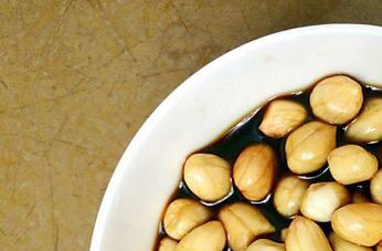 第二步:将花生米蒸熟后泡入陈醋中,泡上足足半个小时。