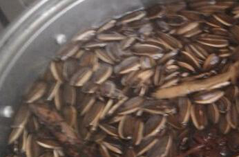 五香瓜子还有一种简单的做法,适合人们在家庭中制作,具体做法是把生的葵花子用清水洗好,与花椒和食用起火等调味料放在锅中煮制,开锅以后煮半小时关火,然后再让瓜子在汤汁中浸泡十几个小时,从水中取出,放在暖气上烘干。烘干以后再把它们放在锅中炒制几分钟,这时香气诱人的五香瓜子就可以出锅了。