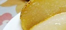 1、把准备好的雪梨用清水洗净,在洗的时候最好取少量的盐在它的外表上搓动一回,能让雪梨表面的胶质和农药残留去除干净。