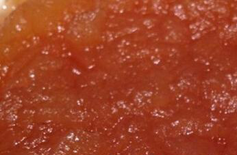 3、在收汁的同时要用勺子用力的去压锅中的苹果,把它们压碎,然后等苹果把锅中的液全部吸收,就可以关火晾制了。