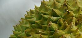榴莲的外表上都有大量的尖刺存在,大家可以捏动其中的一个尖刺,如果感觉较硬,说明这种榴莲还不熟,不宜购买,要是同时捏两个硬刺,很轻松就能让它们靠在一起,则说明这种榴莲是成熟的。