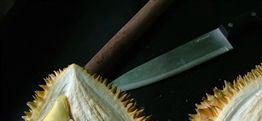 榴莲在泰国最负有盛名,被誉为“水果之王”。它的气味浓烈、爱之者赞其香,厌之者怨其臭。榴莲有金枕、甲仑、和青尼等品种,以金枕品质最好,也最名贵,因其多肉、口感柔软、绵长且状如枕头而得名。榴莲的果肉含火气,稍吃过量会流鼻血,避免上火的办法是吃山竹,因为山竹可以清热去火。
