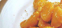 2、在碗中放入烧熟的油,等到整个油锅热起来就可以放入苹果块,用油炸到苹果外皮爽脆,颜色金黄的时候,就可以把油倒出来沥干。这就完成了制作炸苹果块的基本工作,到这一步,拔丝苹果基本成型。