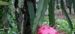果,其中以红肉火龙果最佳。果肉甜而不腻,清淡中有一点芬芳,甜充为16-18度,胜似西瓜,从其结构、吃法、口感等方面来看可称为“树西瓜”。