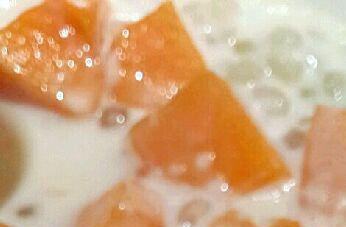 锅中放水煮沸后,加入西米,小火煮约10分钟关火盖好盖,闷约15分钟后,再开火煮约10分钟,再关火盖上盖闷至西米全部呈透明状后捞出放入凉开水中(以防粘连);