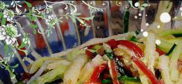 梨1只 金糕1块(也叫山楂糕)盐1/4茶匙(盐)蜂蜜1汤匙(15ml)1)将黄瓜洗净切细丝,梨去皮切细丝,金糕切细丝。将黄瓜丝和梨丝放入大碗中,调入盐和蜂蜜,改上保鲜膜腌制20分钟。
