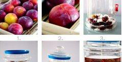 3、把想存放李子酒的容器用开水烫一下,把水分擦干再用高度白酒涮一下,最后也要彻底擦干。把切好地李子摆放在容器底部,摆满一层以后再撒一层白糖。
