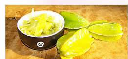 杨桃为酢酱草科植物杨桃的果实,是久负盛名的岭南佳果之一。杨桃一年四季交替互生,但以7月开花,秋分果熟的为最佳,所以中秋前后是杨桃上市的最佳季节。杨桃又分为酸杨桃和甜杨挑两大类,最负盛名的当数广州市郊芳村花地所产的杨桃,生食味美可口,有消热、生津、利水之效。而酸杨桃较少生吃,多作烹调配料或加工蜜饯,或做药用。 杨桃果皮光滑鲜艳带有腊质,果肉黄亮细嫩,爽脆多汁。杨桃含有多种营养成分,能减少机体对脂肪的吸收,同时还有护肝降糖作用,所以尤其适用于患有心血管疾病或肥胖的人食用。杨桃中糖类、维生素C及有机酸含量丰富,果汁充沛,能迅速补充人体的水分,生津止渴,消除疲劳。果汁中含有大量草酸、柠檬酸、苹果酸等,能促进食物的消化。杨桃含有大量的挥发性成分,可消除咽喉炎症及口腔溃疡。杨桃根、枝、叶、花、果均可供药用,最常用的是果肉。据《纲目》载:“主治风热,生津止渴”。所以杨桃又有治咽喉痛能手的美誉。