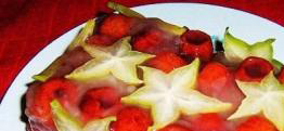 这是一款水果布丁,哈哈 这个布丁大了点。味道绝佳,想想都好吃。杨桃中就含有特别多的果酸,它内含的果酸能抑制角质细胞内聚力及黑色素沉淀,有效地去除或淡化黑斑。
