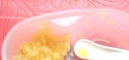 食谱原料:亨氏金香苹果泥25克、婴儿米粉、香橙汁