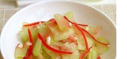 4、在炒制西瓜皮时,为了增加它的口味,可能与猪里脊肉或者鸡肉一起炒制,但是在炒以前最好把肉切成细丝,然后再用调料腌制十五分钟。