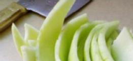 2.然后我们要把西瓜皮切成四四方方的小方块。