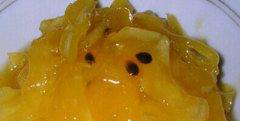6、等木瓜片的温度全部降下来以后,就可以取出把水分沥干,然后放在自己喜欢的容器中,把制好的西番莲酱料加入进去,用筷子调匀,再存入冰箱中冷藏三到四天就可以取出食用了。