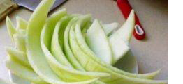 1、大家在吃完西瓜以后,用刀把西反皮里层啃过的部分削掉,然后再用刀去除它外层上的硬皮。