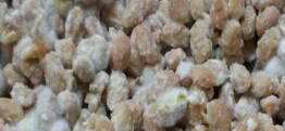 2、把黄豆晾好后盖一层纱布,放在温度比较高,而阴暗的地方让它自然发酵,过十天左右揭开纱布观看时,会发现黄豆外表都有一厘米左右的白毛,这就是菌丝,证明发酵是很成功的。