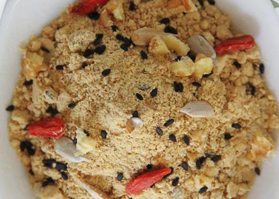 1、五仁油茶在制作时要准备面粉、核桃仁以及花生米和白芝麻,还要准备适量的黑芝麻和瓜子仁,另外还要准备食用盐和食用盐以及十三香。准备一个干净的炒锅,把它加热烧干以后把准备好的面粉放到炒锅中用小火慢慢炒,炒到面粉呈现浅黄色以后,再把炒好的面粉取出降温,然后过筛。