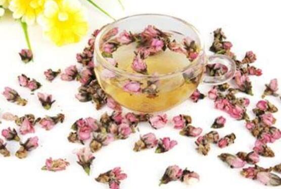 桃花茶还可以搭配适量的菊花一起冲泡,在需要的时候可以准备两朵金桔,再准备5克桃花,把它们一起放到杯子中,加开水冲泡,等泡出的茶汤温度降到40度左右时,放适量蜂蜜调味,调匀后可直接饮用这样泡出的桃花茶能清热解毒滋养肌肤,而且能起到利尿通便的重要作用。