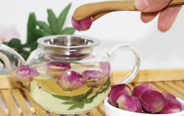 人们在采集芍药的鲜嫩花蕾,进了晾晒加工后得到芍药花茶还具有较强的可塑性,它可以直接用水冲泡后工人饮用,在需要的时候可以取3~5克的芍药花,直接放在干净玻璃杯中,冲入90度以上的开水,冲水后盖好杯子盖闷泡三分钟,取出里面的茶汤可直接饮用,而且每次放入的芍药花茶可以反复冲泡多次。
