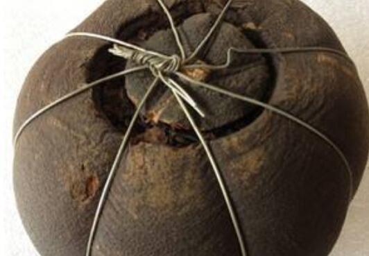 2、把柚子果肉撕成碎末以后,与准备好的熟普洱茶放在一起揉匀,然后重新装入到柚子果皮中,并把切下的部分果皮再重新放回去,并用线把它们绑在一起,然后把它们悬挂在阴凉通风的地方晾干,过一年左右里面的柚普茶就能做好。