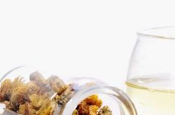 3、菊花在泡水喝时,还可以把冰糖和菊花一起放到杯子中,然后再冲入沸水,这样泡出的菊花茶,滋味会更加诱人,而且能让它清热解毒,滋阴润燥的功效更加出色。