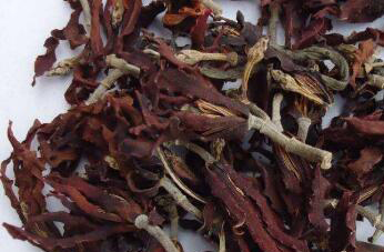 2、把泡好以后的玉兰花花瓣取出来,去掉水分以后,用线把它们穿起来,然后悬挂在通风的地方晾干,晾干后把它收集起来,密封保存,这时自制的玉兰花茶也就做好了,平时想喝时,可以直接取出3到5片冲泡饮用。