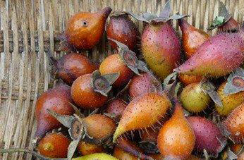 前面就说过,金樱子泡酒,一定要选择成熟度更高的金樱子,我们将买回来或者摘回来的金樱子挑选一番,去掉绿色,保留哪些个头大、颜色金黄的金樱子。之后,将其清洗一番,把外面的毛刺去掉,再把金樱子切成两半。
