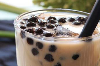 4、把泡好的茶水倒入到调好的奶茶粉中,再加入白糖调匀,最后把煮好的黑珍珠放入到杯子,这时香浓可口的珍珠奶茶就做好的可以饮用了。如果是在夏天喝,也可以把做好的奶茶放入到冰箱冷藏几个小时,取出饮用清凉可口,特别诱人。