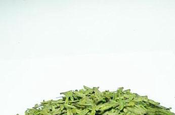 龙井茶叶,扁形、叶细嫩、条形整齐、宽度一致、绿黄色、手感光滑、一芽一叶或二叶。准备透明玻璃杯(本例杯子大小约200ml),置入适量适温的开水后,投入约5公克龙井茶叶。
