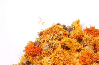 性状 为头状花序或单个花蕾。花序半球形,总苞片6~9,总花梗钩状,全体被淡黄色毛茸。花蕾棒状,稍弯曲,长6~8mm,直径3~5mm,表面被浅黄色或灰白色具汹涌的绢丝状毛茸。