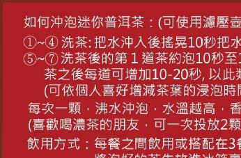 闷泡法:每次倒出茶汤时都留根(也叫汤底),或出六留四,或出五留五。之所以选择这种方法是因为熟普的口感和韵味具有相对的稳定性,留根不影响每泡的味道,反而能浸出它的醇香。