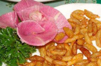 黄蜂蛹就是黄蜂窝里面的蛹虫,打开马蜂窝之后,我们会发现,里面除了蜂蜜、蜂蜡之外,还有很多白白嫩嫩的小虫子,这就是黄蜂蛹。经黄蜂蛹炒菜炒得嫩黄嫩黄,浇上配料,吃起来油脂四溢,非常香美。黄蜂蛹的功效极大,因而,很多人都喜欢吃黄蜂蛹。