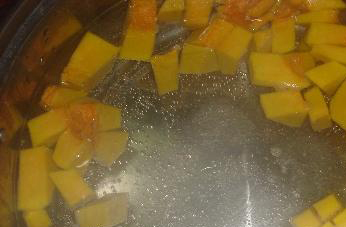 1:南瓜洗净去皮,切成小块 2:将锅中加适量的水,放入南瓜跟少许冰糖 煮到南瓜汤中有南瓜碎碎便可 3:取面粉放入碗中,再加入适量白糖 4:然后加少许水调成面糊